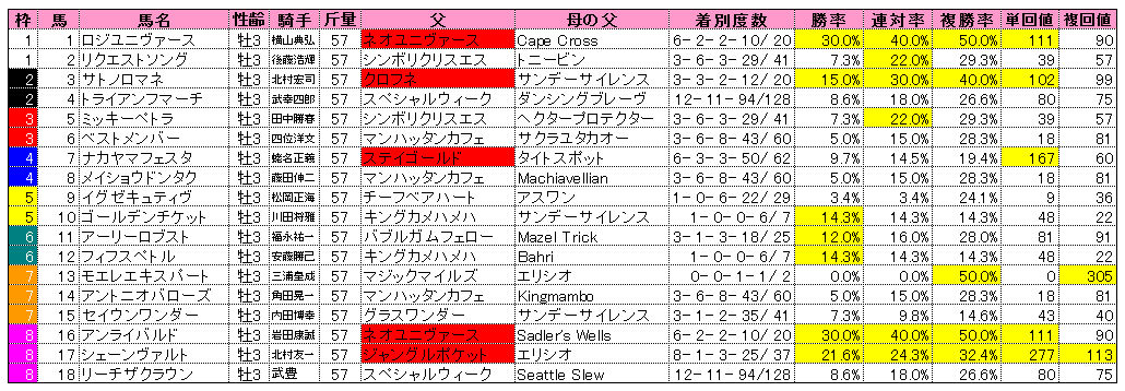まずは皐月賞のデータ関連。