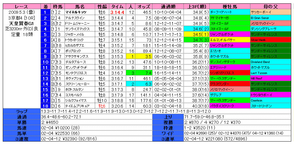 7. 天皇賞春(09年)回顧 [ 血統適性blog ] 2009年05月04日 09:10