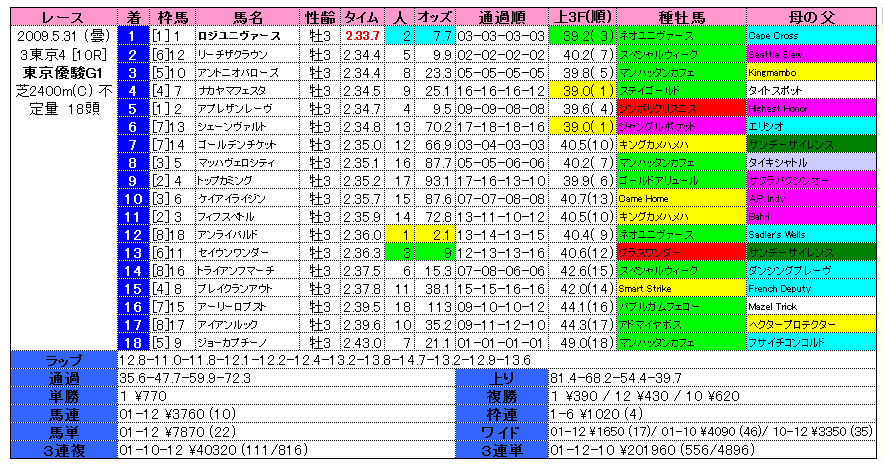 2. 日本ダービー◎ロジユニヴァース快勝! 目黒記念○◎△的中! 回顧 [ 血統適性blog ] 2009年05月31日 20:30