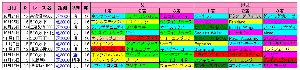 (3)今開催の福島芝2000mの上位血統