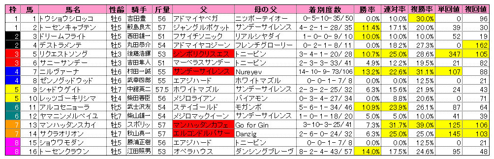 ということでサンデー系は軽視してスタミナ血統を重視して予想します。