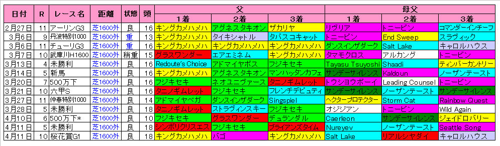 外回りになってから僅か3年ですが血統傾向はくっきり